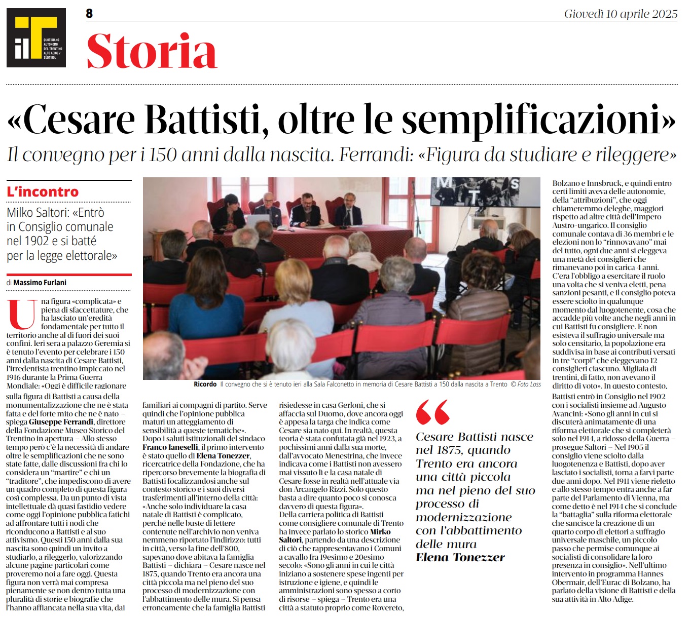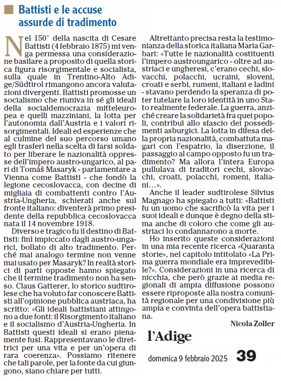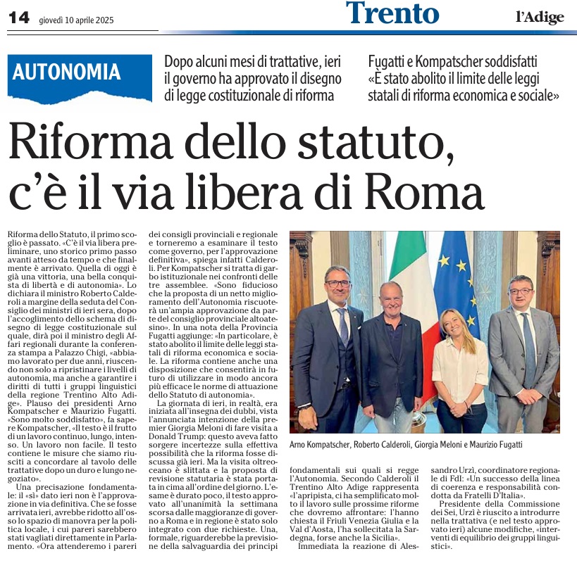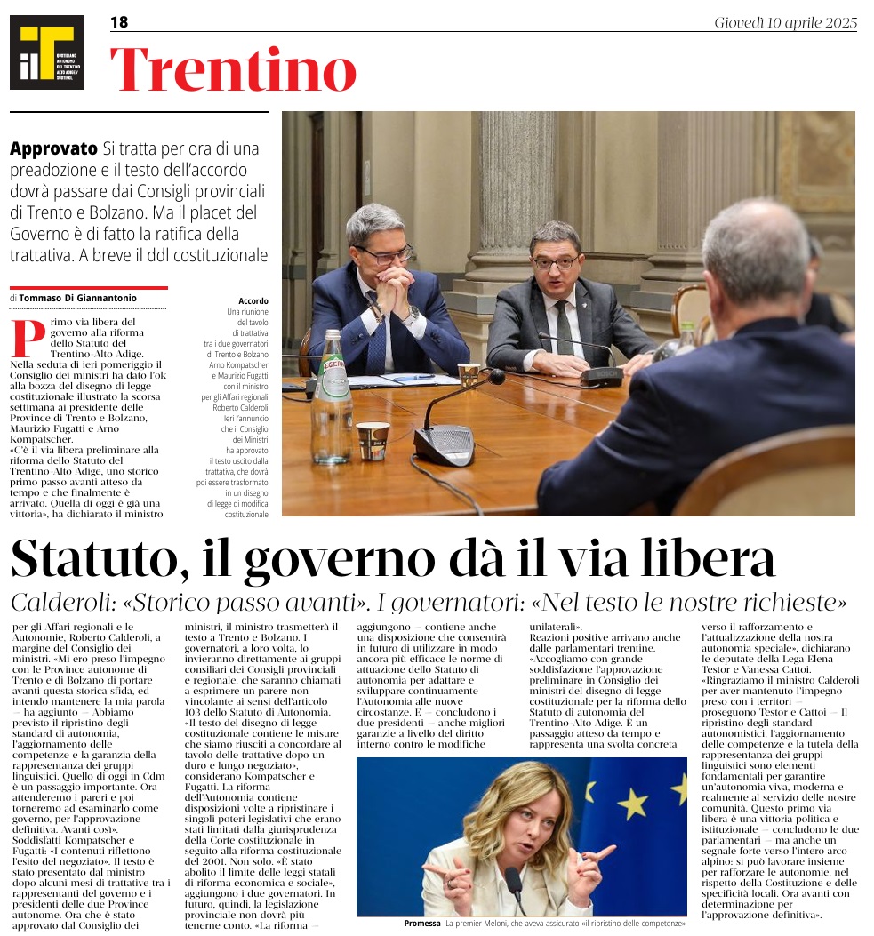 10 - 04 - Cesare Battisti, oltre le semplificazioni - Riforma dello Statuto, c'è via libera da Roma - Riforma, il governo dà via libera