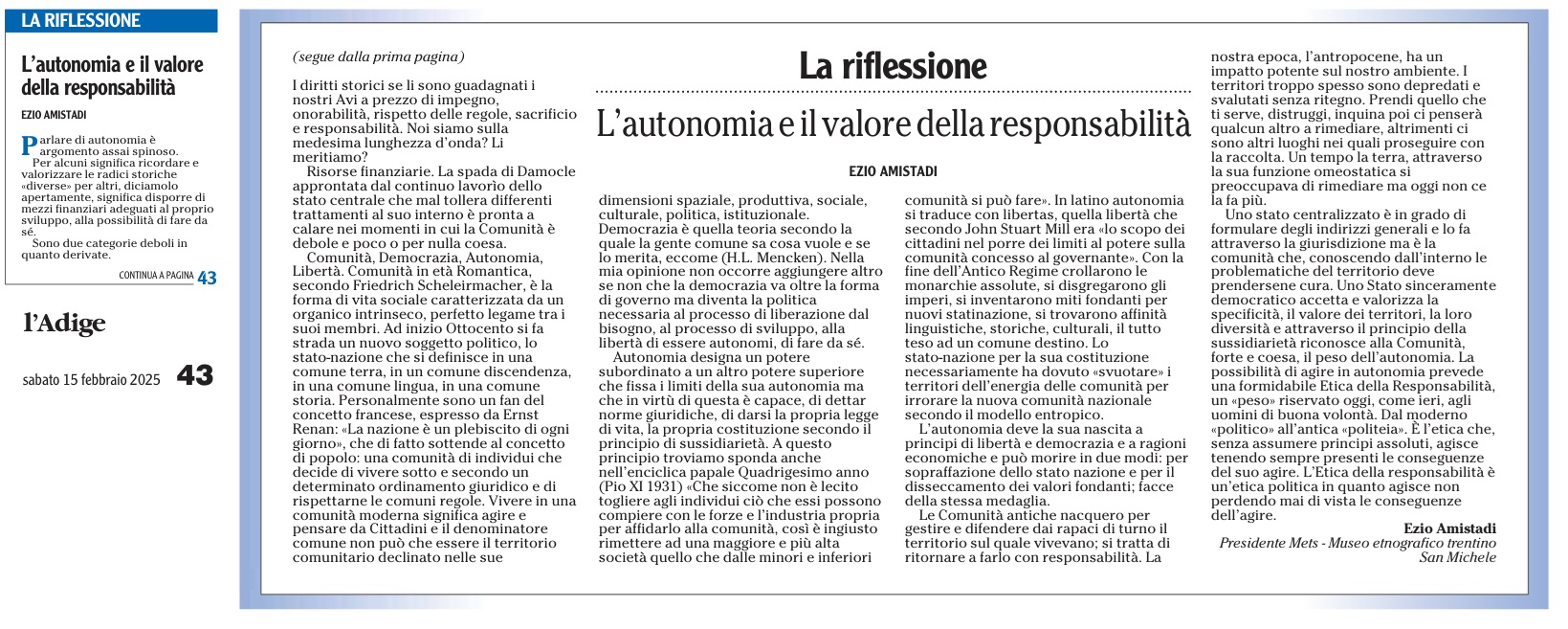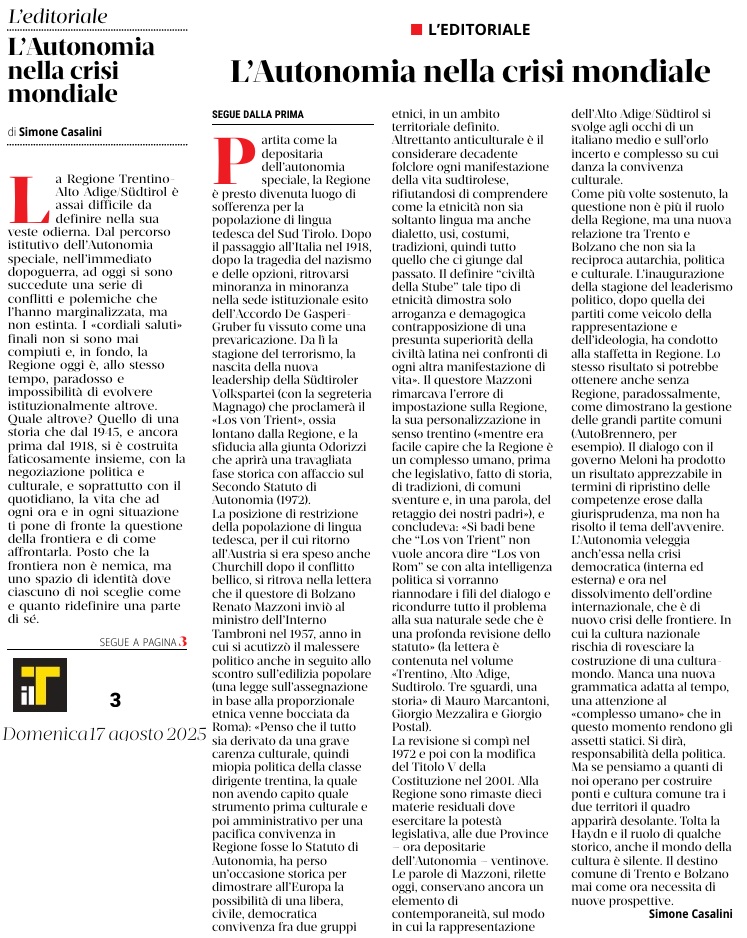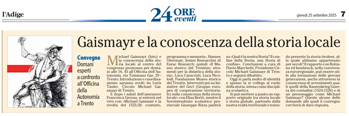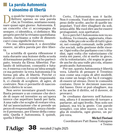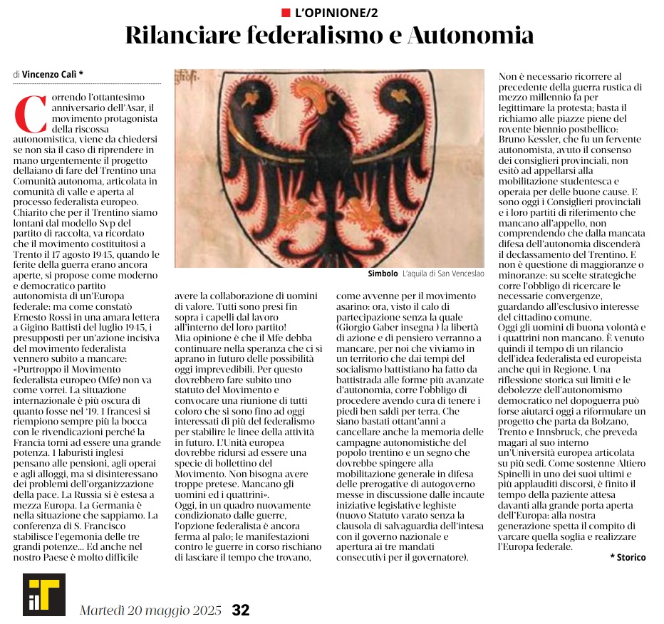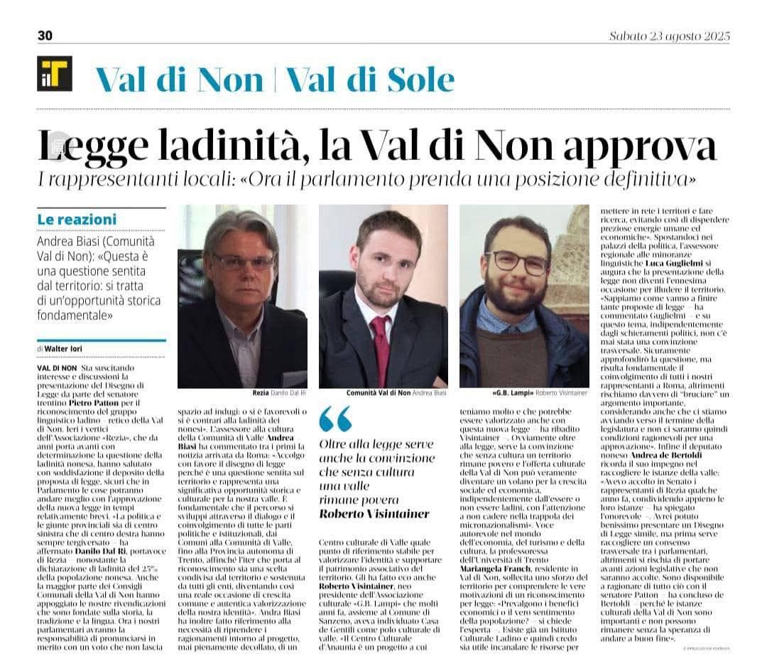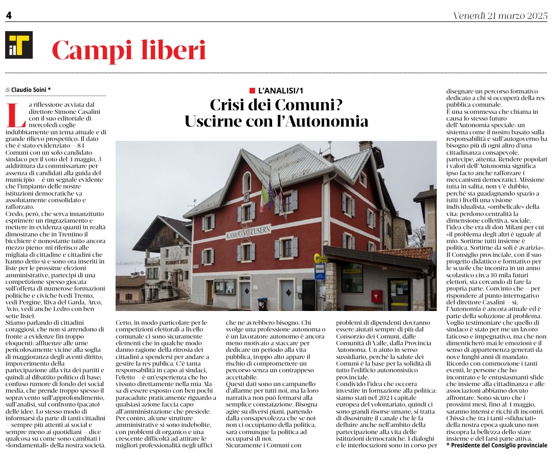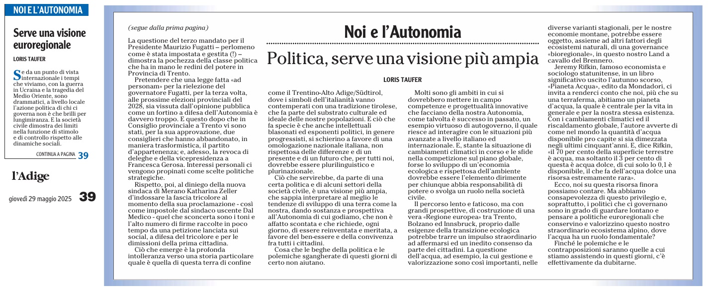 11 - 01 - A Faida di Pinè tra mulini , tedesco e voglia di comunità - Fugatti Terzo mandato, siamo autonomi - Il neo medievalismo che ci domina - La Val di Non recuperi la sua identità - Tricolore ed educazione alla cittadinanza
