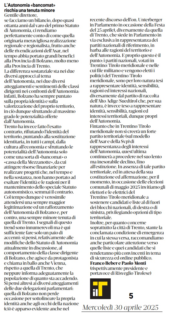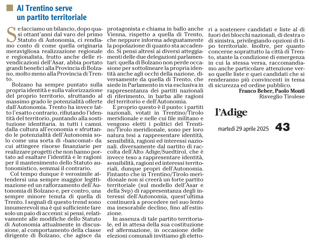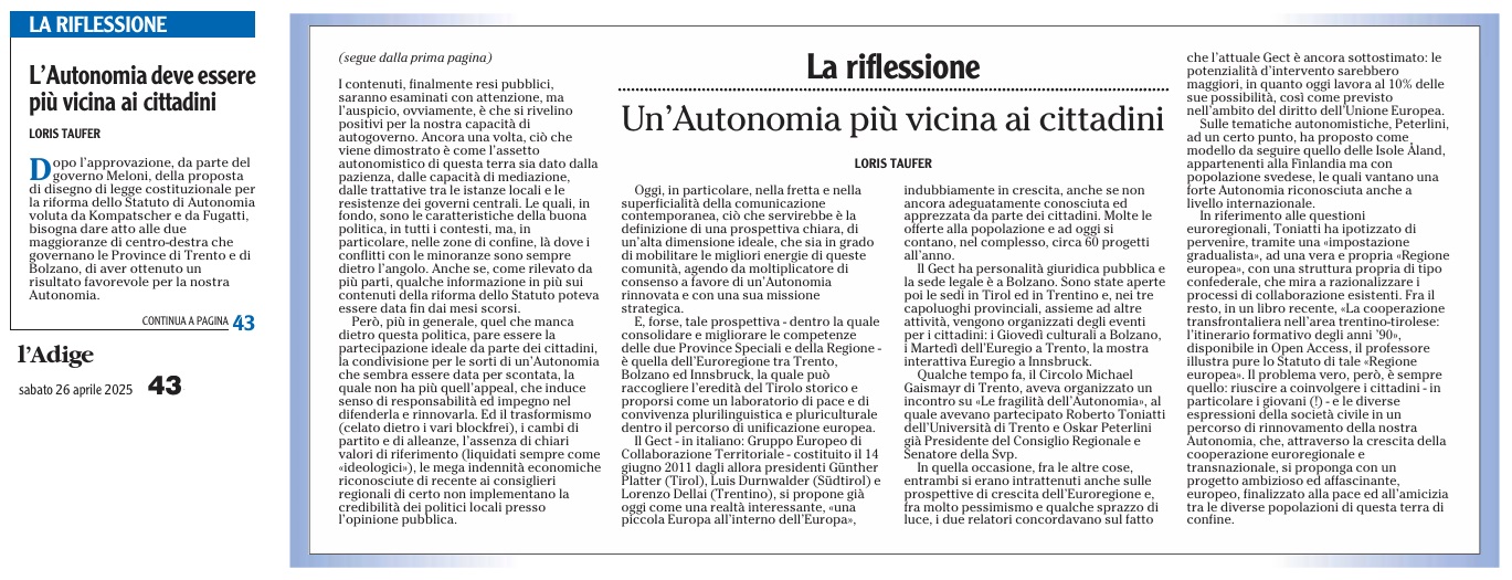 04 - 02 - L'Autonomia ha bisogno dei partiti territoriali - Tra Austria e Italia l'unione dei cervelli