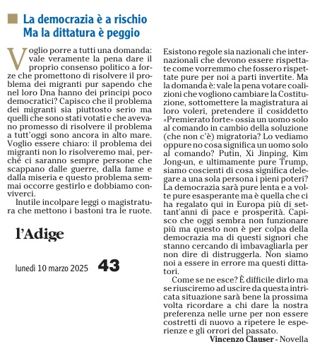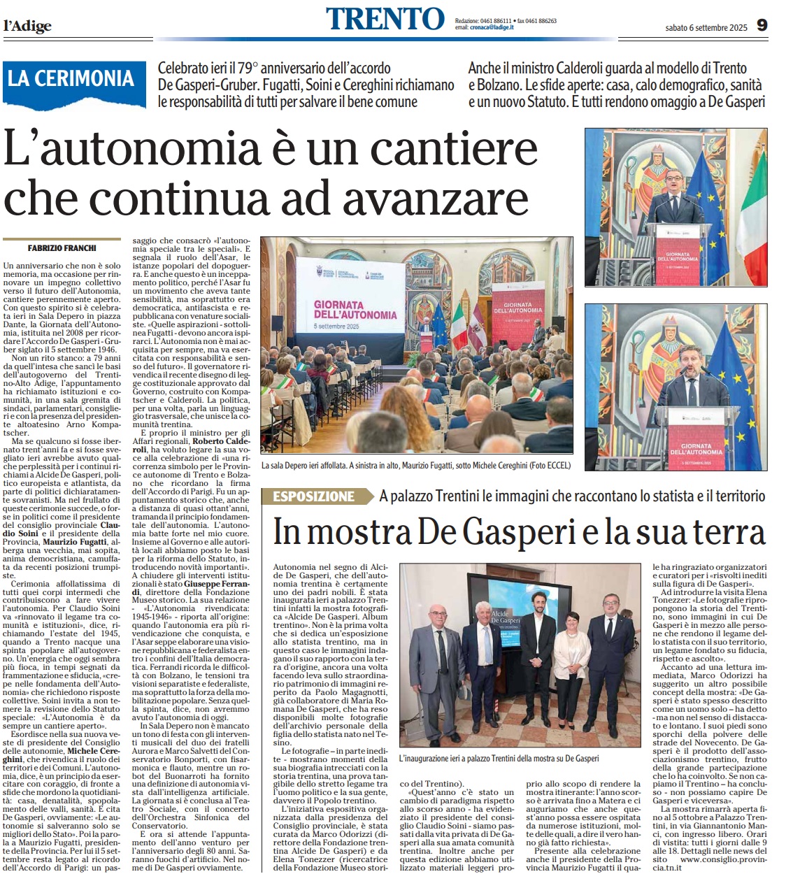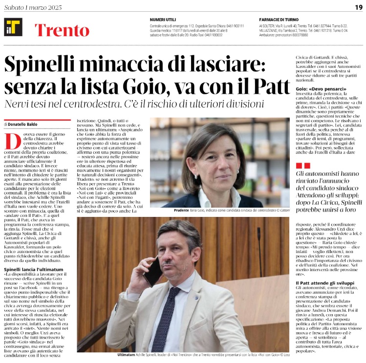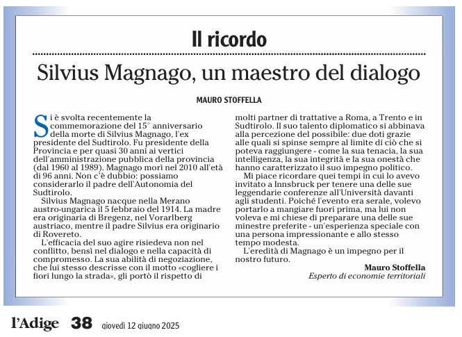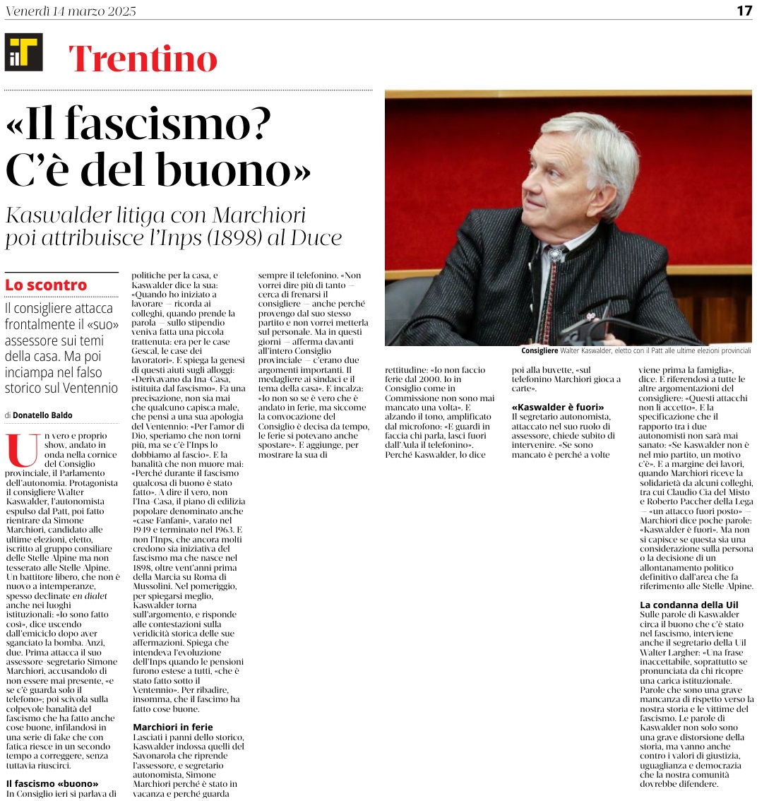 14 - 03 - A Lavis omaggio a Clara Marchetto - Comuni, la crisi ha radici lontane - Difendere l'Europa è difendere noi stessi - Ecco il Mitag che ammicca ai giovani - Il fascismo C'é del buono - Il Museo guarda avanti ora chiamatelo Mitag - Kaswalder sul fascismo Ha fatto cose buone