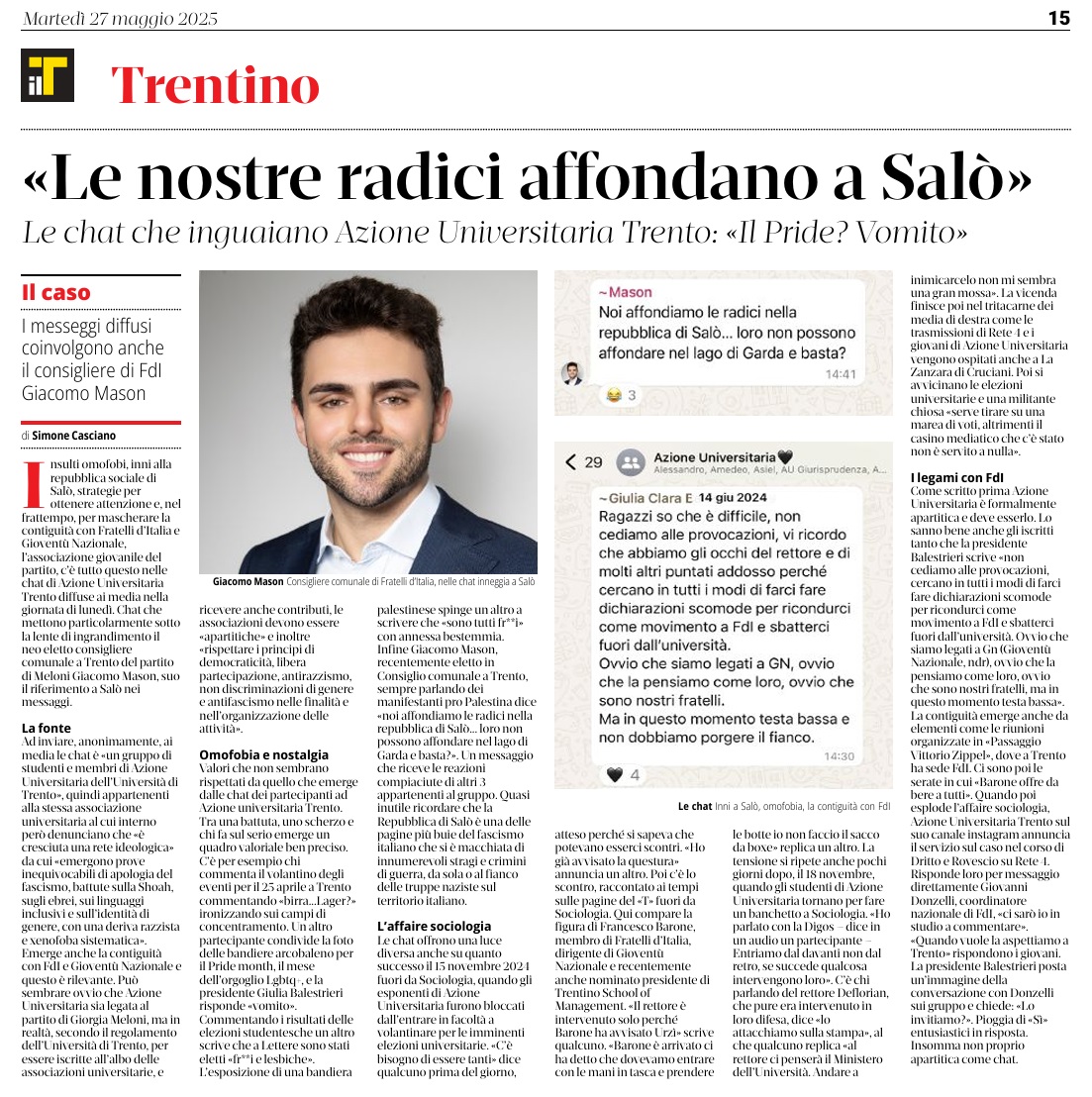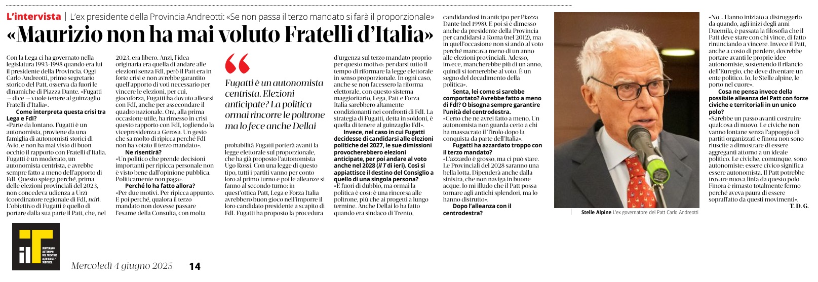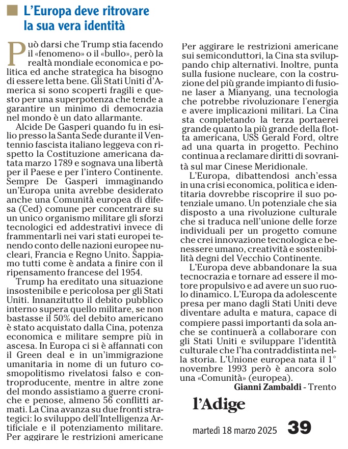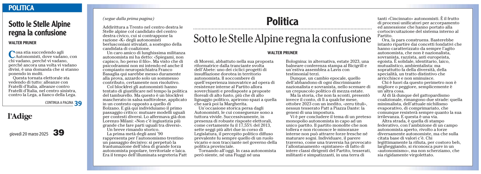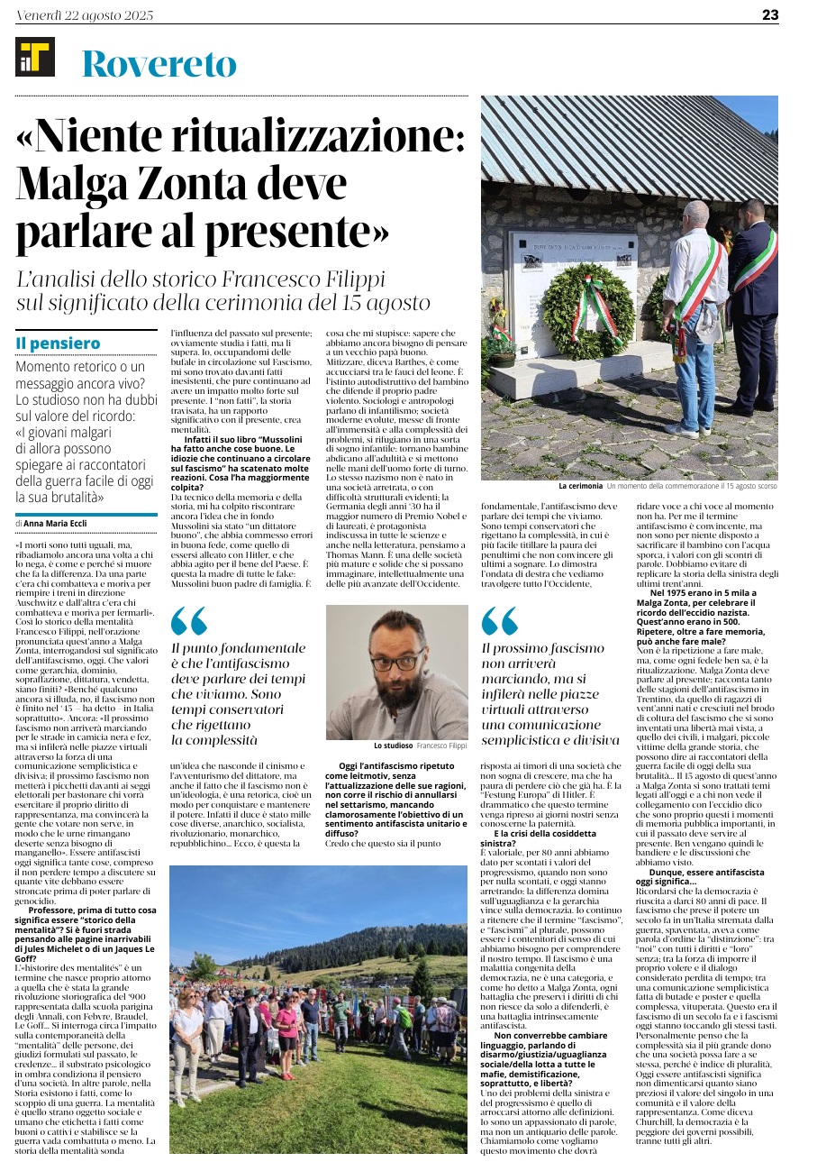 14 - 03 - A Lavis omaggio a Clara Marchetto - Comuni, la crisi ha radici lontane - Difendere l'Europa è difendere noi stessi - Ecco il Mitag che ammicca ai giovani - Il fascismo C'é del buono - Il Museo guarda avanti ora chiamatelo Mitag - Kaswalder sul fascismo Ha fatto cose buone
