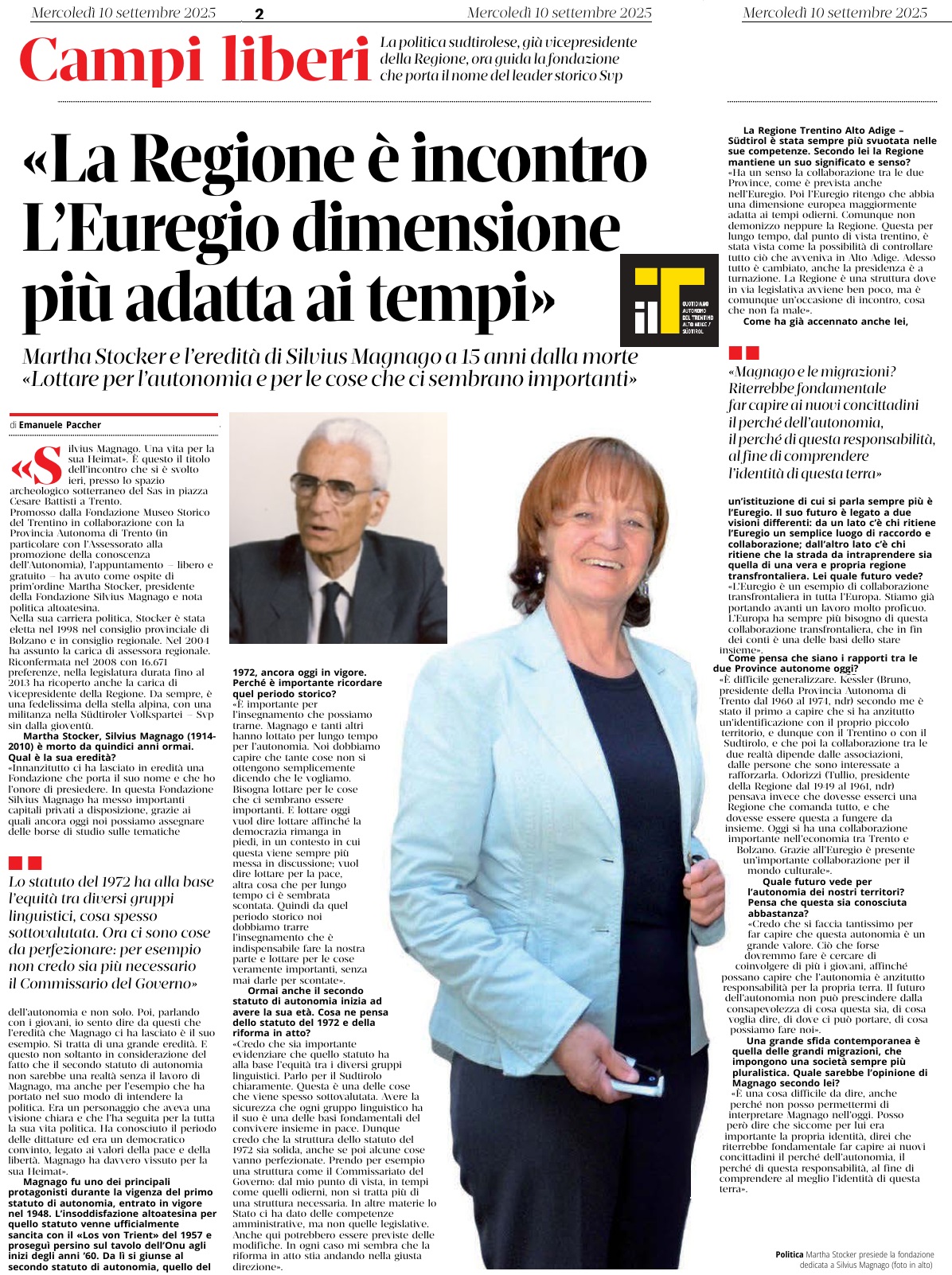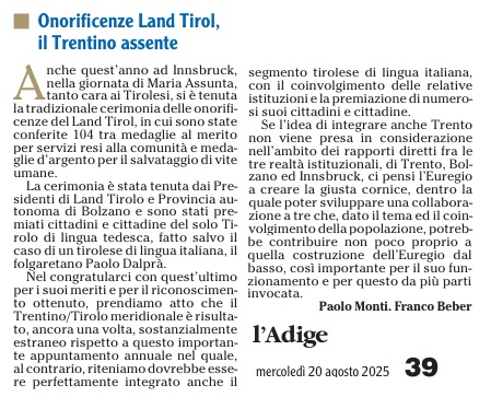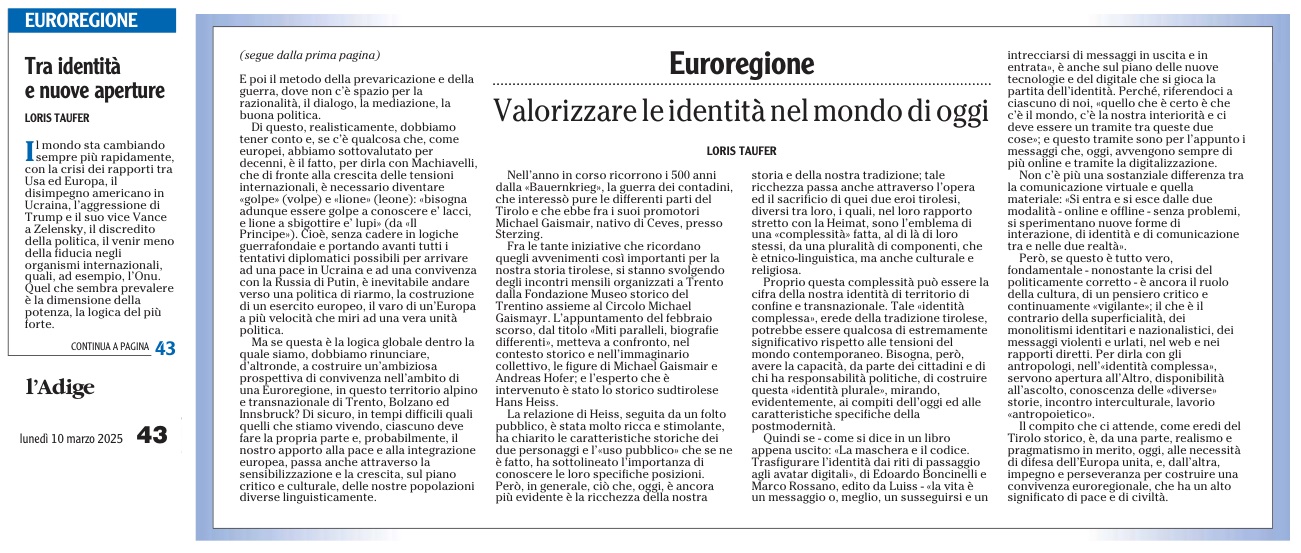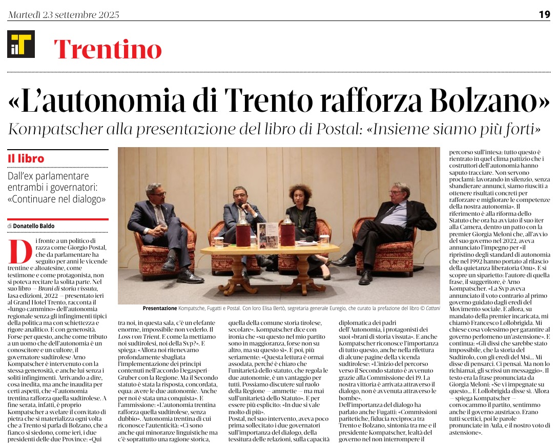 10 - 09 - la Regione è Incontro. L'Euregio dimensione più adatta ai tempi - Meio star sul sicur.... - Mettiamo l'Euregio nello Statuto
