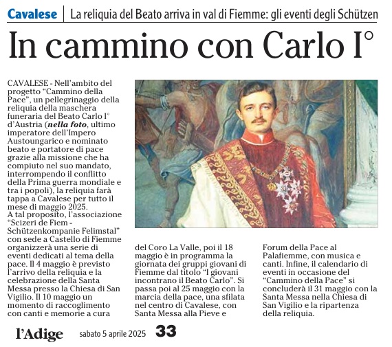 04 - 05 - Beato Carlo I, la val di Fiemme gli rende omaggio - Carlo I d'Austria, arriva la reliquia del beato - La guerra sulla porta