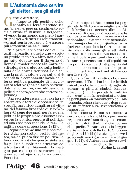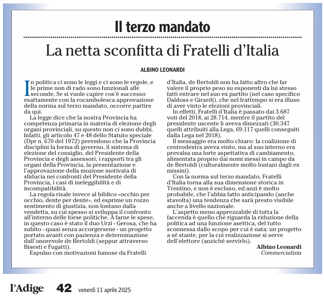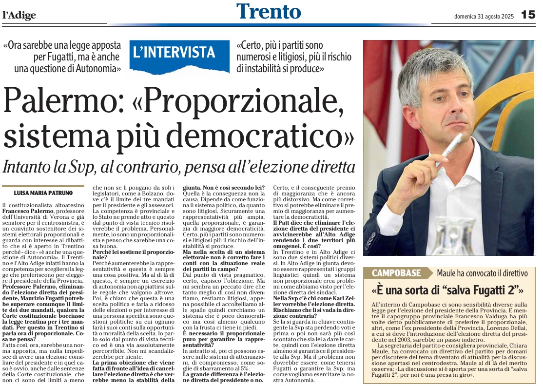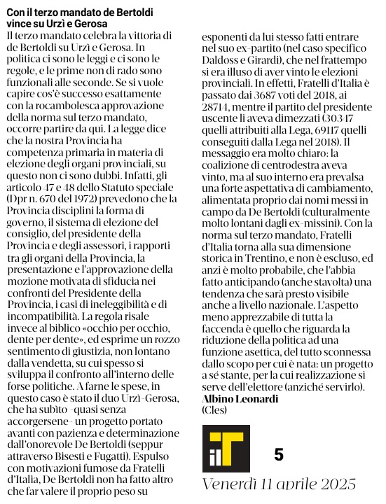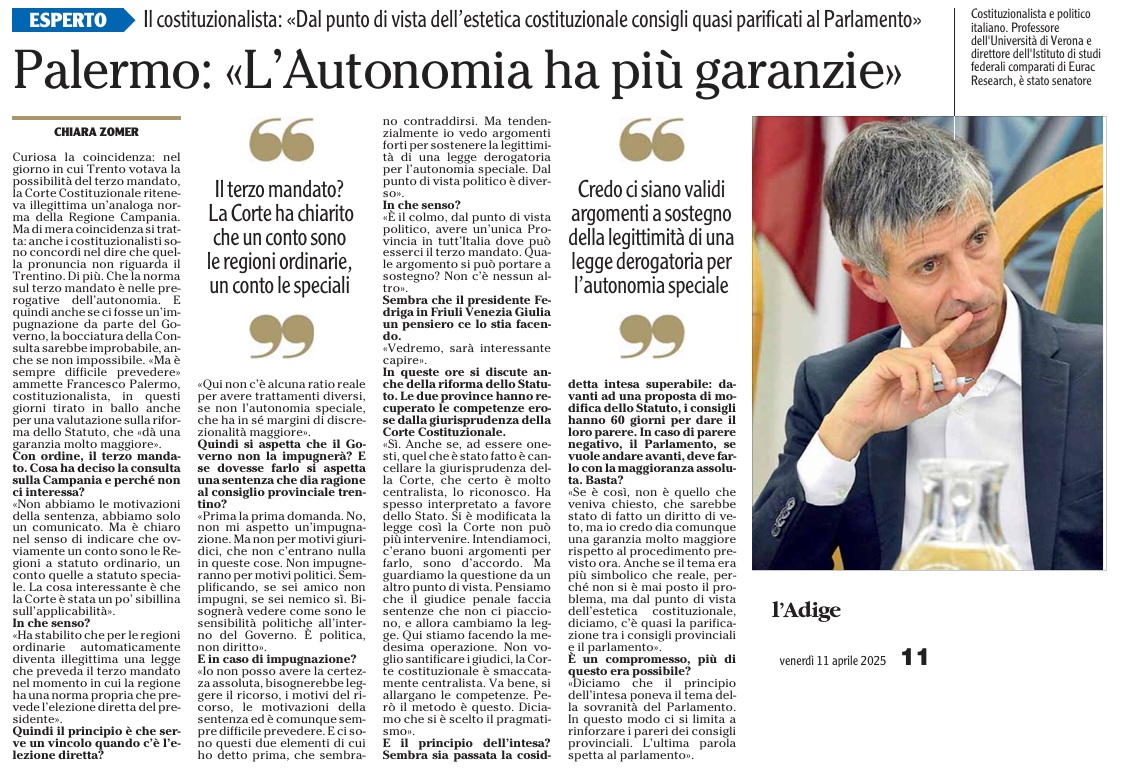 11 - 04 - Con il terzo mandato de Bertoldi vince su Urzì e Gerosa - La Corte potrebbe bocciare la legge Così i poteri non sono bilanciati - La netta sconfitta di Fratelli d'Italia - Palermo L'Autonomia ha più garanzie