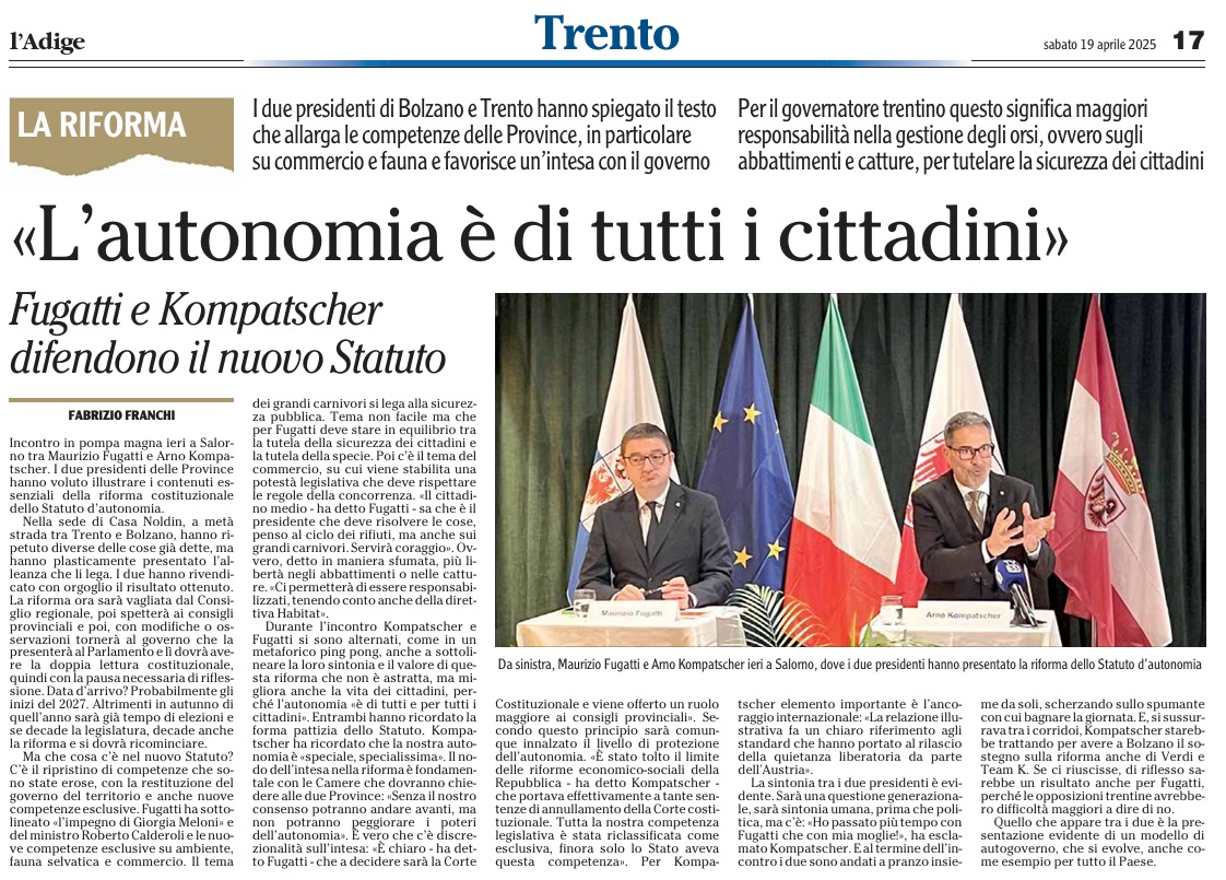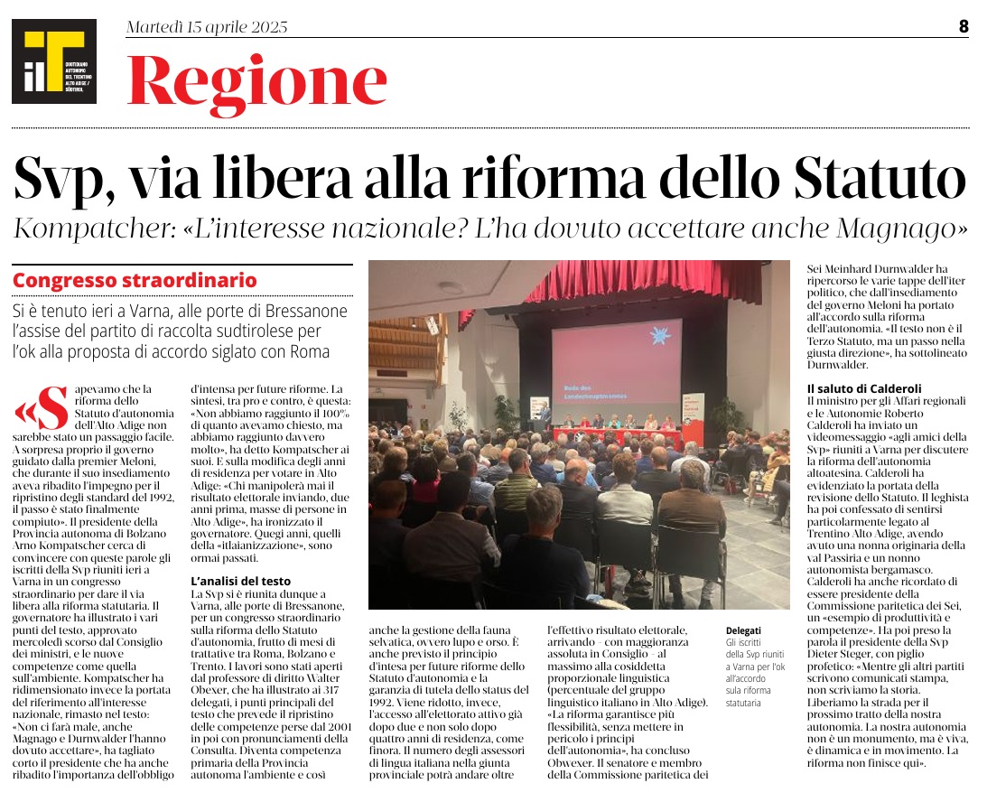 03 - 01 - Kompatscher vuole l'intesa? Ridiscutiamo i vincoli etnici - Le parole di Kompatscher e la Regione europea