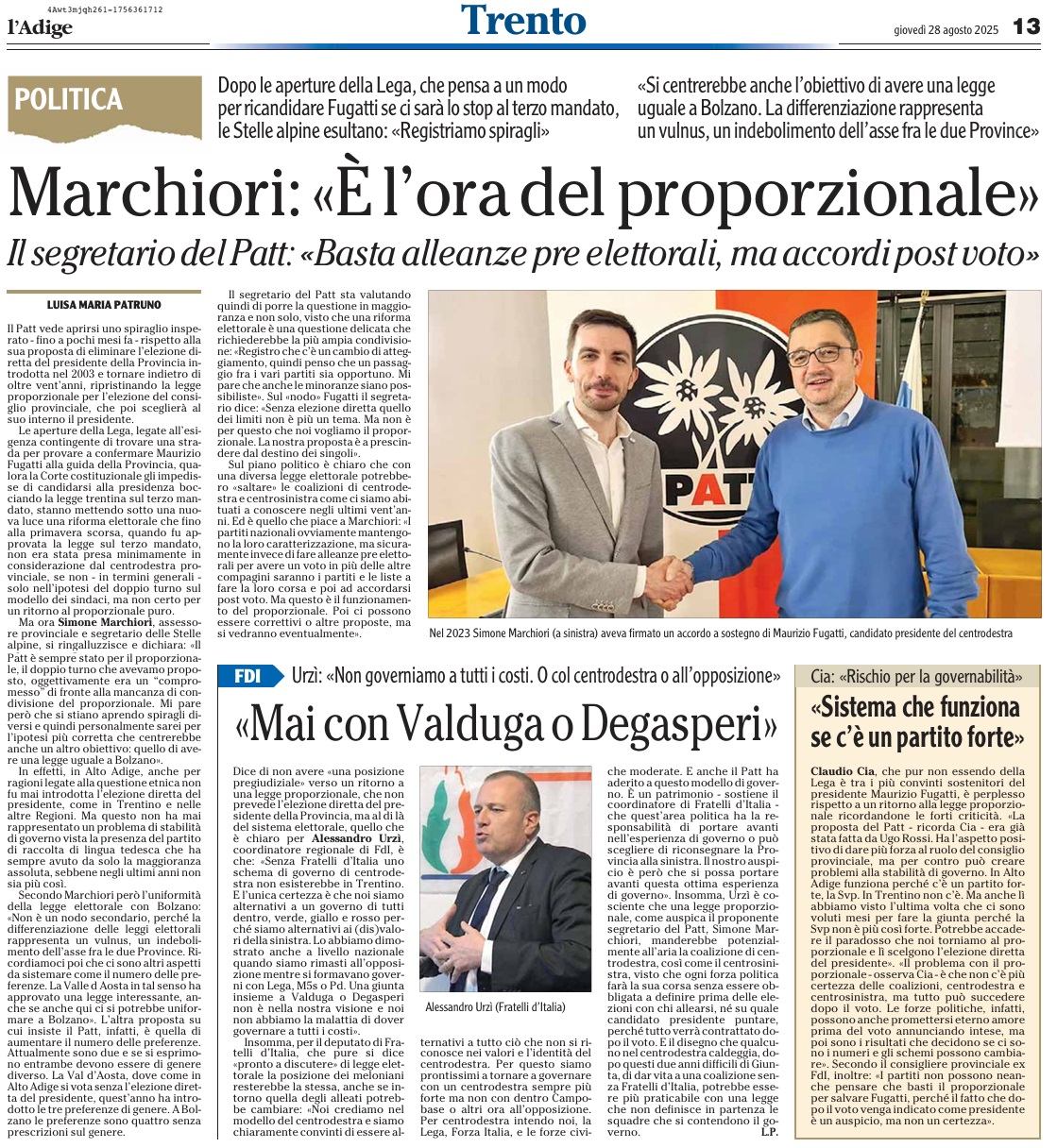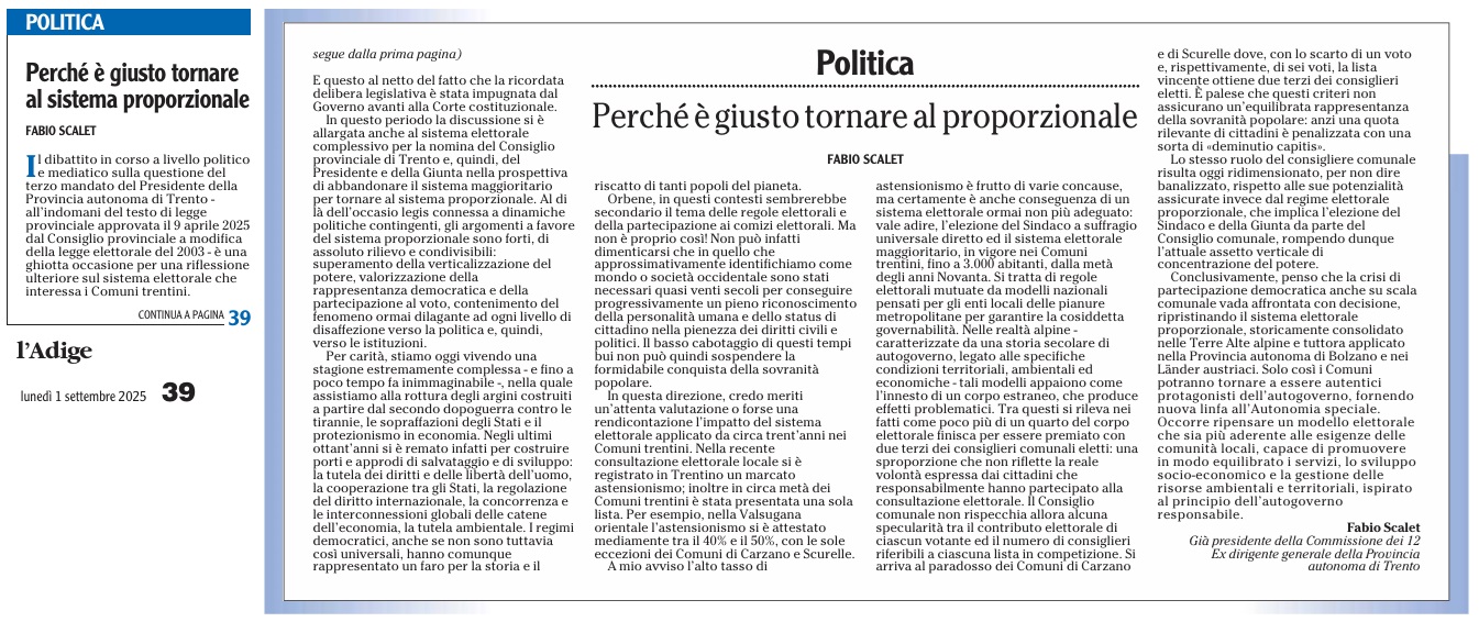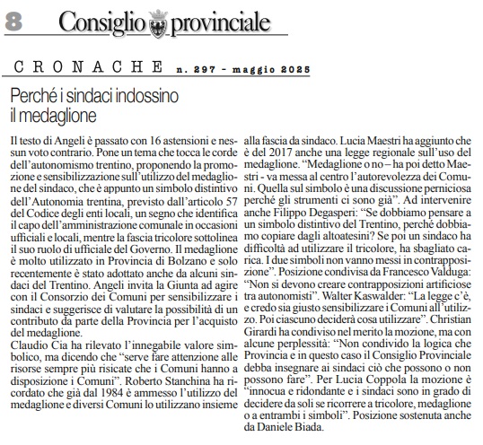 02 - 09 - I sindaci e il medaglione simbolo dell'autonomia - Proporzionale per Fugatti é un ipotesi indecente