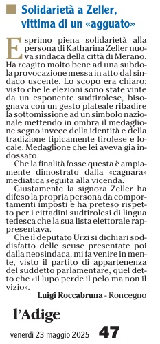 23 - 05 - La cultura dell'Autonomia - Solidarietà a Zeller vittima di un agguato - Studenti a scuola di Tirolo