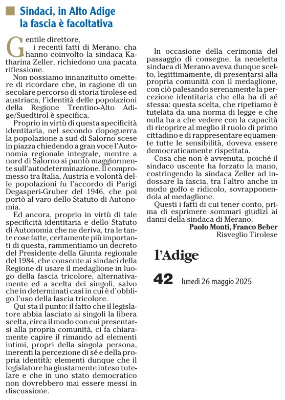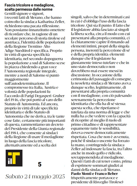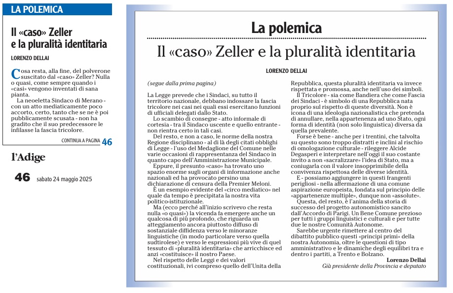 24 - 05 - Fascia tricolore e medaglione, scelta permessa dalle norme - Il caso Zeller e la pluralità identitaria