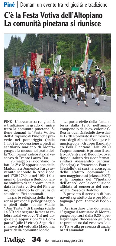 25 - 05 - C'è la Festa Votiva dell'Altopiano