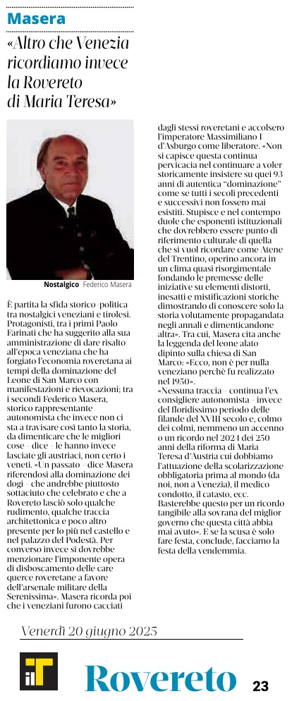 20 - 06 - Altro che Venezia ricordiamo invece la Rovereto di Maria Teresa - Ricerca, Trento batte Bolzano oltre 100 milioni in più l'anno