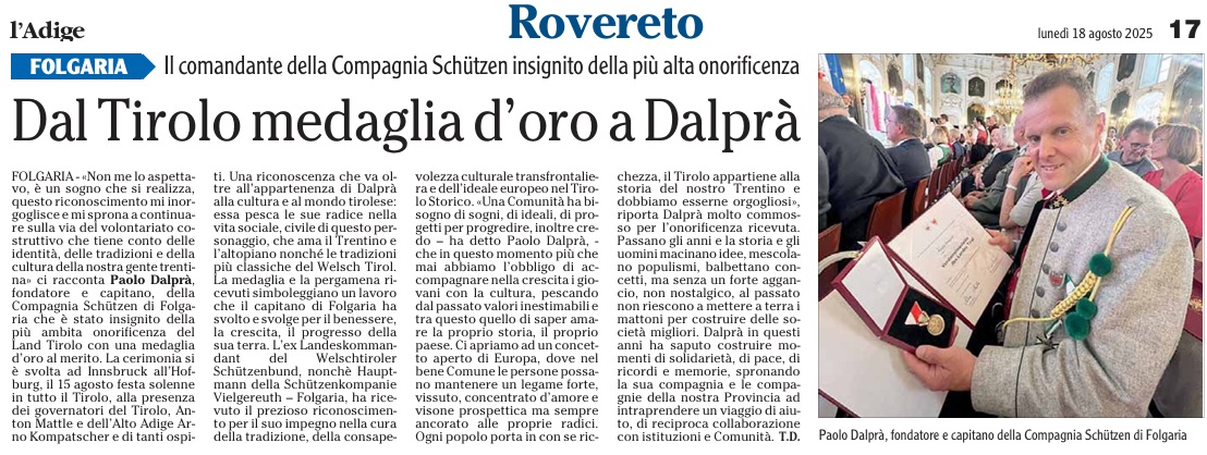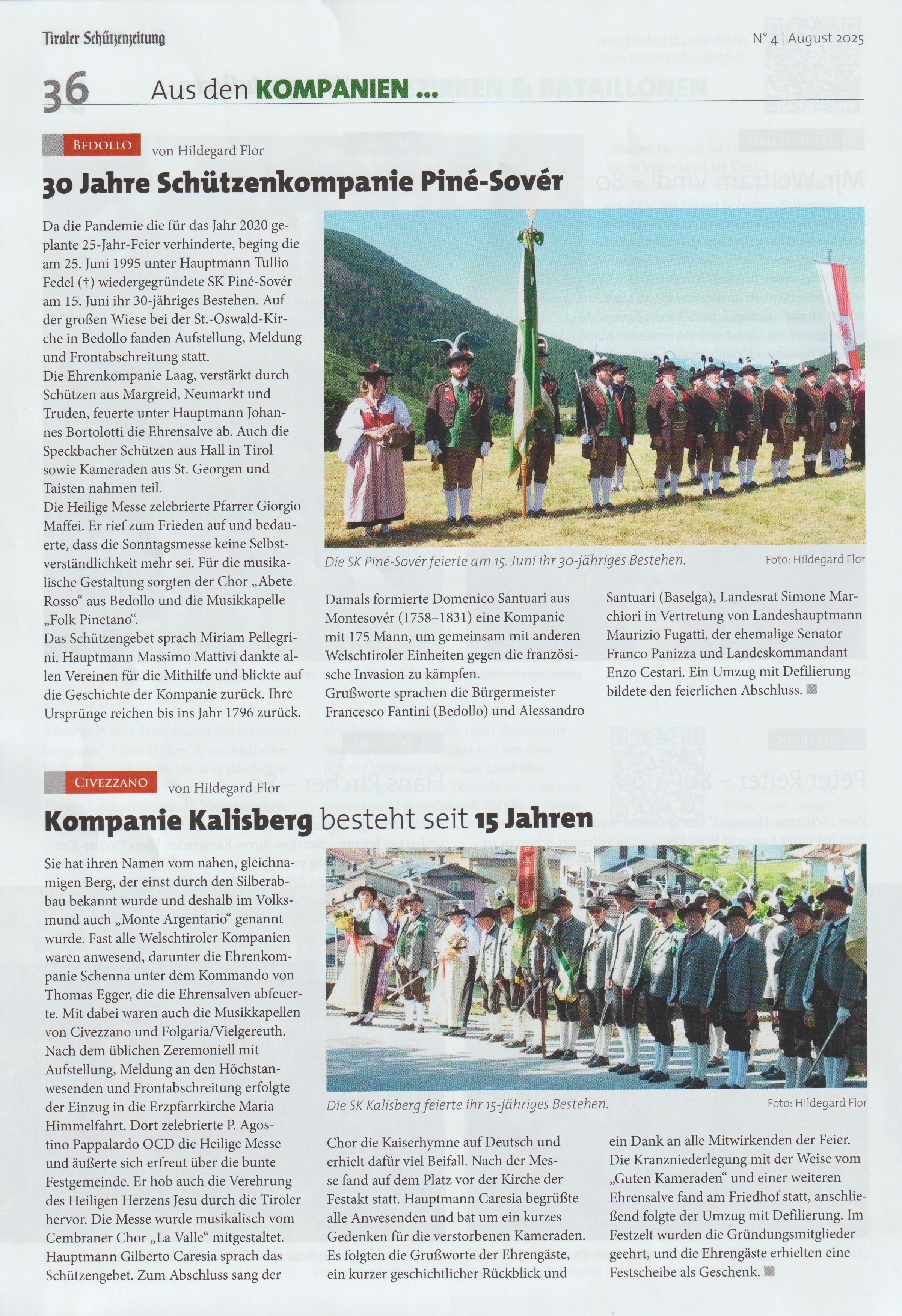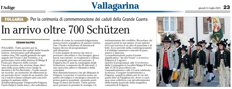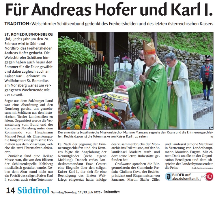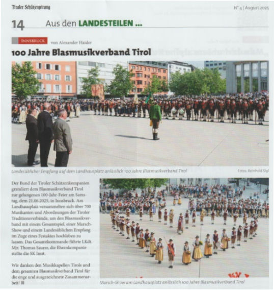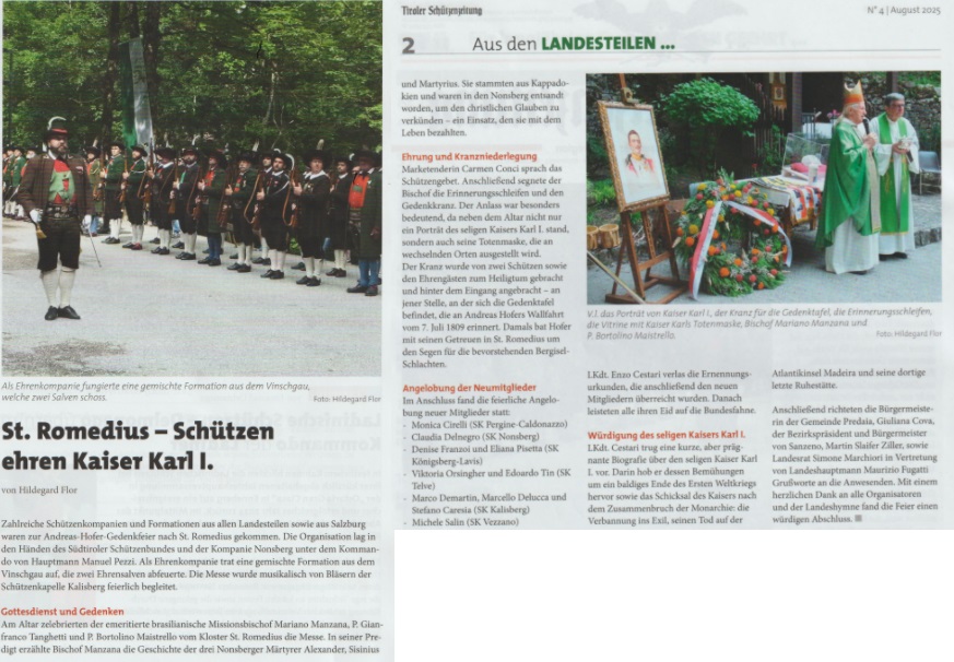 01 - 08 - Und es gibt ihn also. Doch.Noch. - 100 Jahre Blasmusikverbamìnd Tirol - Aus den Vierteln, Bezierken & Batallionen - Landesschiessenan 27 Schiessständen in Tirol erfolgreich abgeschloossen - Palazzo Arzberg chiude i battenti - Piné Sovér Kalisberg - St. Romedius, Schützen ehren Kaiser Karl.