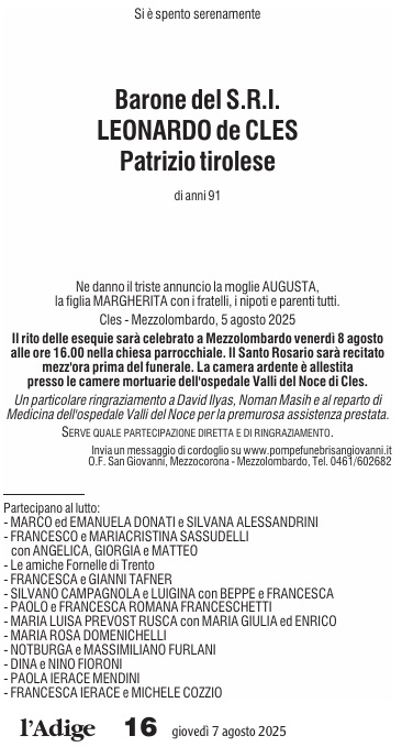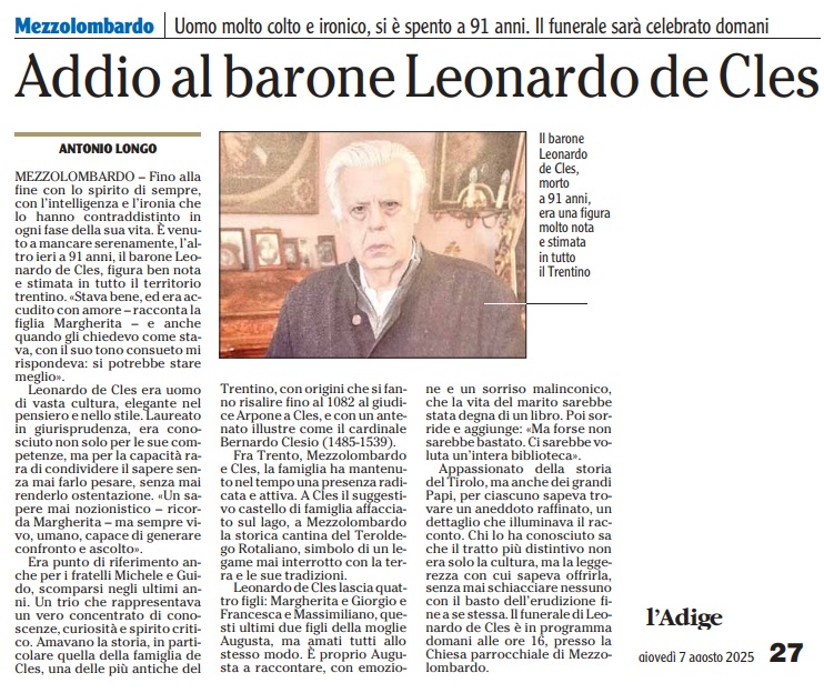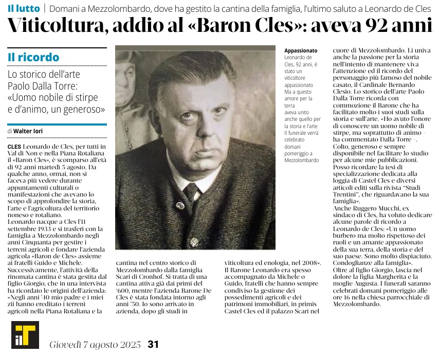 07 - 08 - Barone Leonardo de Cles patrizio tirolese - Addio al barone Leonardo de Cles - Viticultura, addio al Baron Cles_ aveva 92 anni