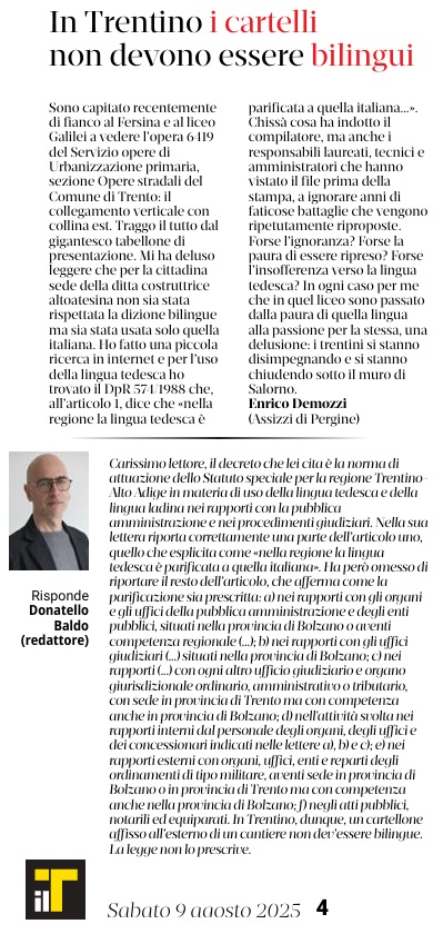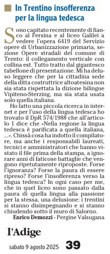 09 - 08 - In Trentino i cartelli non devono essere bilingui - In Trentino insofferenza per la lingua tedesca
