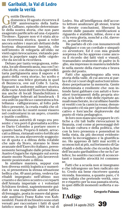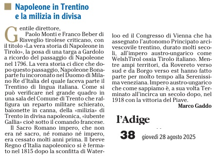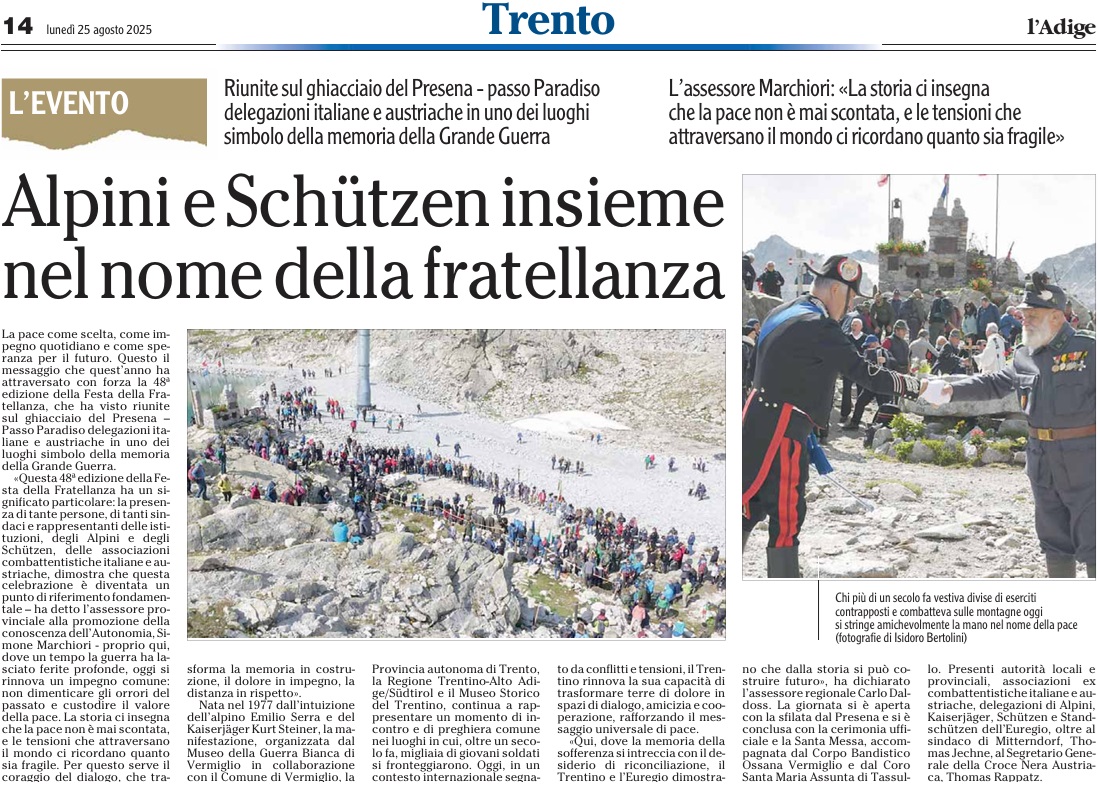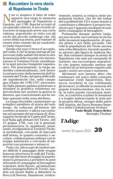 25 - 08 - Alpini e Schützen insieme nel nome della fratellanza - Dolomiten - Targa per ricordare la storia, non per celebrare Napoleone