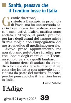 21 - 08 - Agosto Valle di Sole, nuova vita per lo storico Gruppo Folk - Sanità, pensavo che il Trentino fosse in Italia