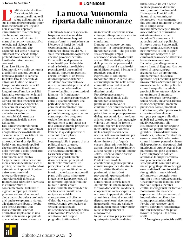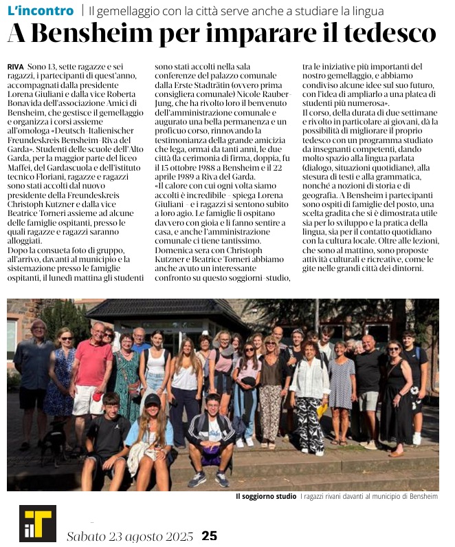 23 - 08 - A Bensheim per imparare il tedesco - La nuova autonomia riparta dalle minoranze - Legge ladinità, la Val di Non approva - Una mostra per risalire alle origini dell'Autonomia