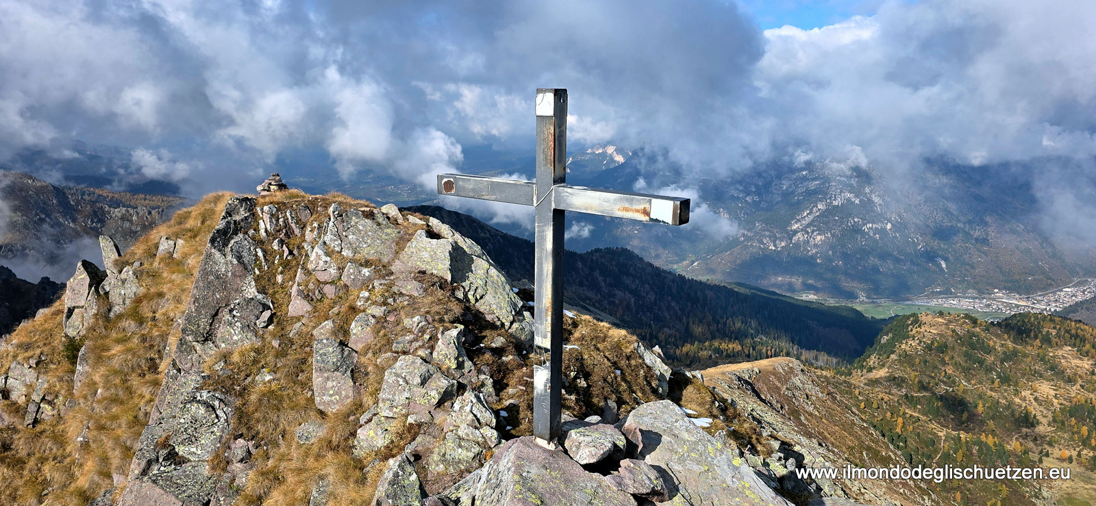 2024_09_19 Monte Croce m. 2490. Il monte Croce (2.490 m s.l.m.) o Cràiz (in dialetto pinetano), conosciuto anche come Kraizspiz (dal tedesco Kreuzspitze) tra gli abitanti della Valsugana e della Val dei Mocheni, è una montagna appartenente al gruppo del Lagorai che si erge a sud delle Dolomiti di Fiemme e Fassa. La cima è raggiungibile sia da malga Cagnon di sopra (Telve) sia dal paese di Palù del Fersina, ma anche dal rifugio Giovanni Tonini e dal paese di Brusago di Pinè. | foto / Bilder | foto / Bilder | |