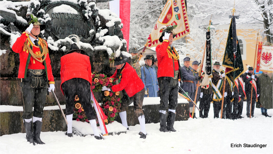 2026_02_22 SK Bozen. Andreas Hofer Gedenkfeier. Heilige Messe in Dom. Kranzniederlegung und Ehrensalve am Peter Mayr Denkmal.
