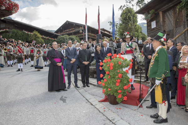 Posa della targa "1809 i luoghi della memoria, Andreas Hofer era quì" a Predazzo