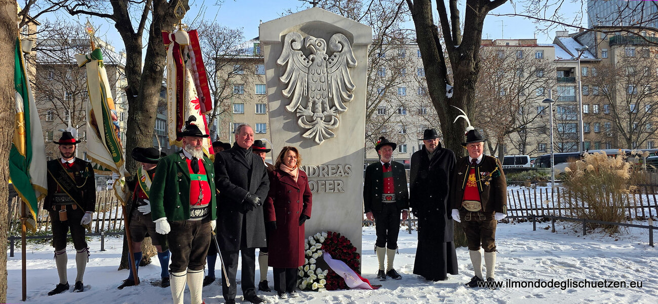 2026_01_11 Tiroler Bund in Wien. La domenica successiva al Tirolerball, in Suedtirolplatz, deposizione di una corona al monumento dedicato ad Andreas Hofer.
